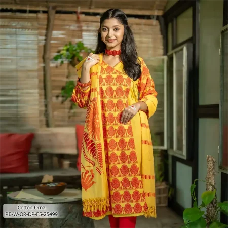 - Product Details: This Cotton women’s orna features screen-print & Hand-Work.