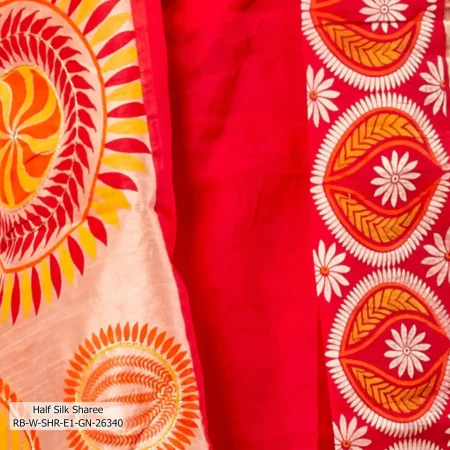 - Product Details: This Half-silk women’s sharee features Screen-Print.