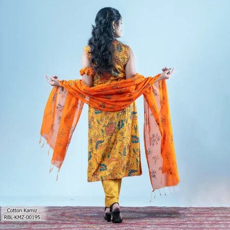 - Product Details: This Cotton women’s single kamiz features screen-print, karchupi & patchwork.