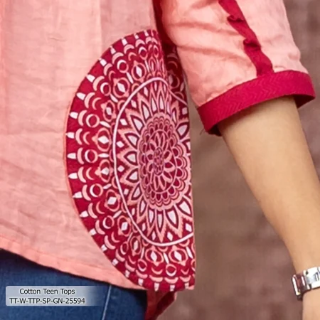 - Product Details: This Cotton women’s tops features Screen-Print & Patch-Work.