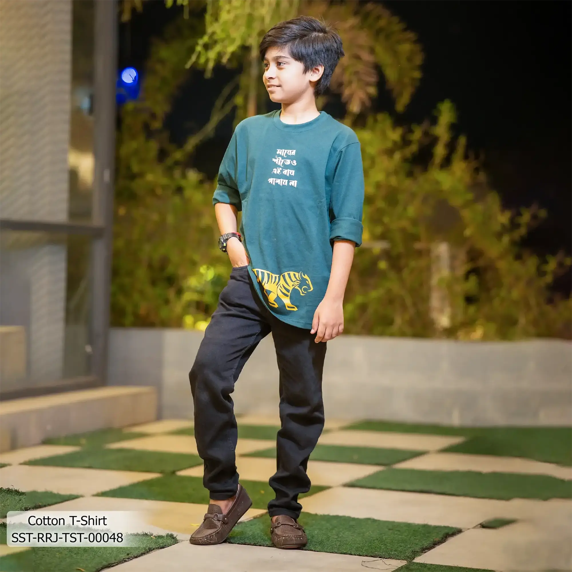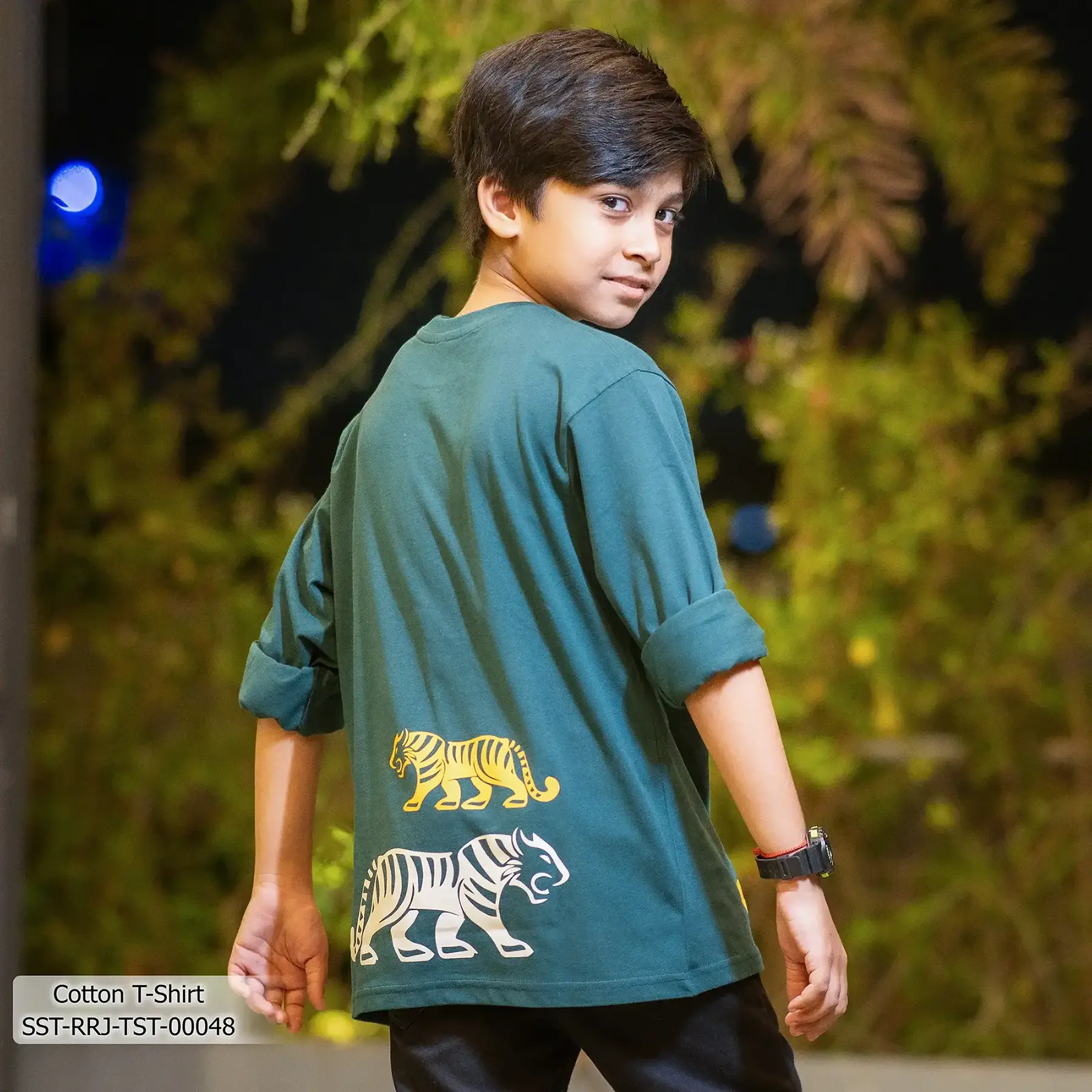 - Product Details: This Cotton boy’s full-sleeve t-shirt features screen-print work.