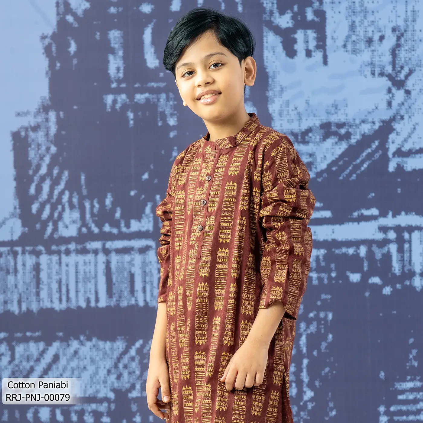 • Product Details: This cotton boy’s Panjabi features screen-print work.