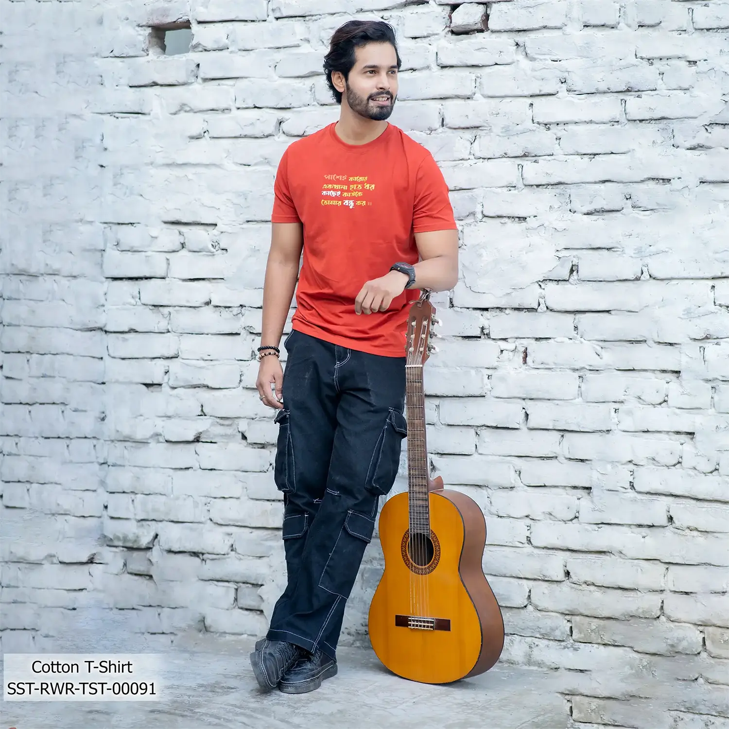 - Product Details: This Half Sleevs Cotton Men’s T-Shirt features Rubber print work.