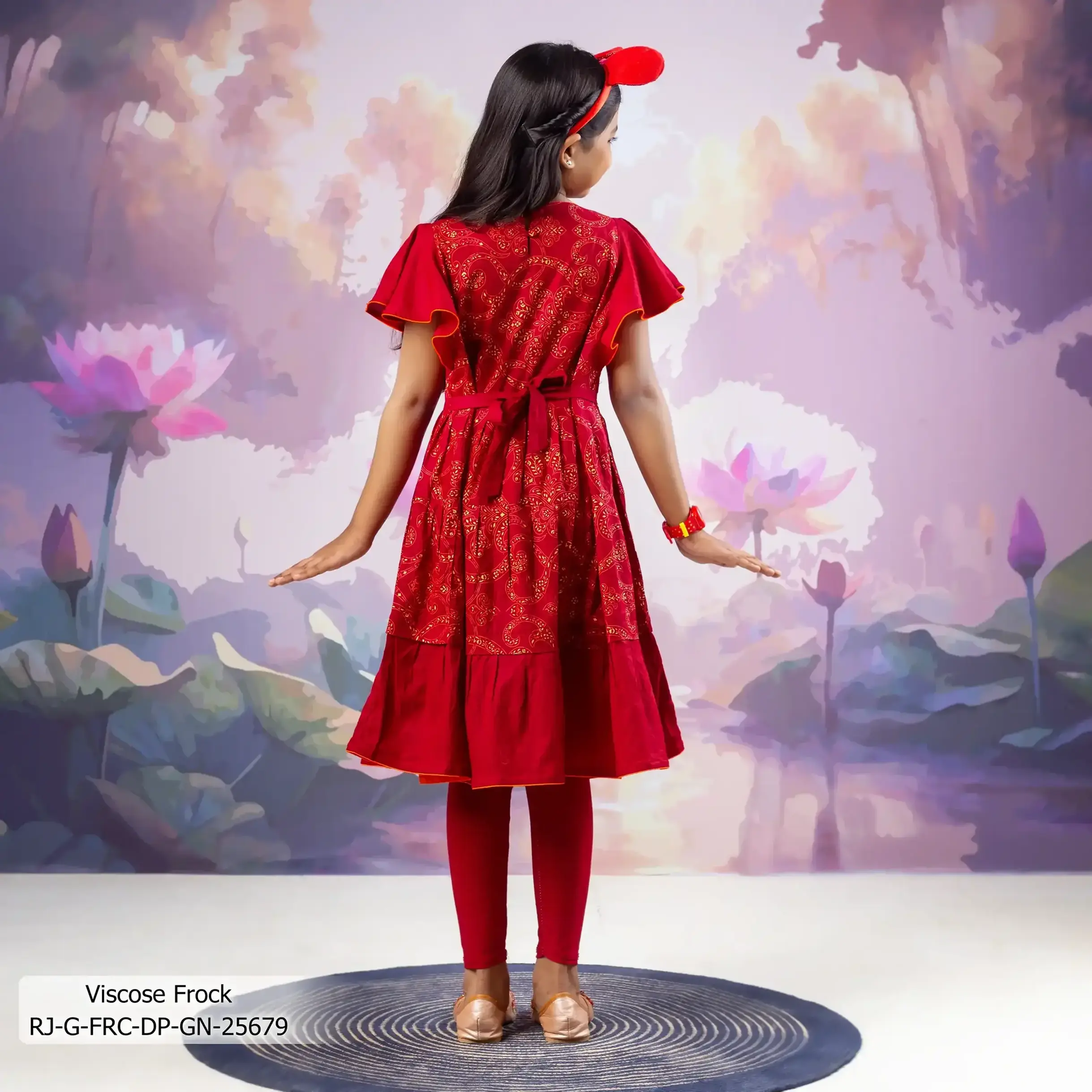 - Product Details: This Viscose girl’s frock features Screen-Print & Patch-work.