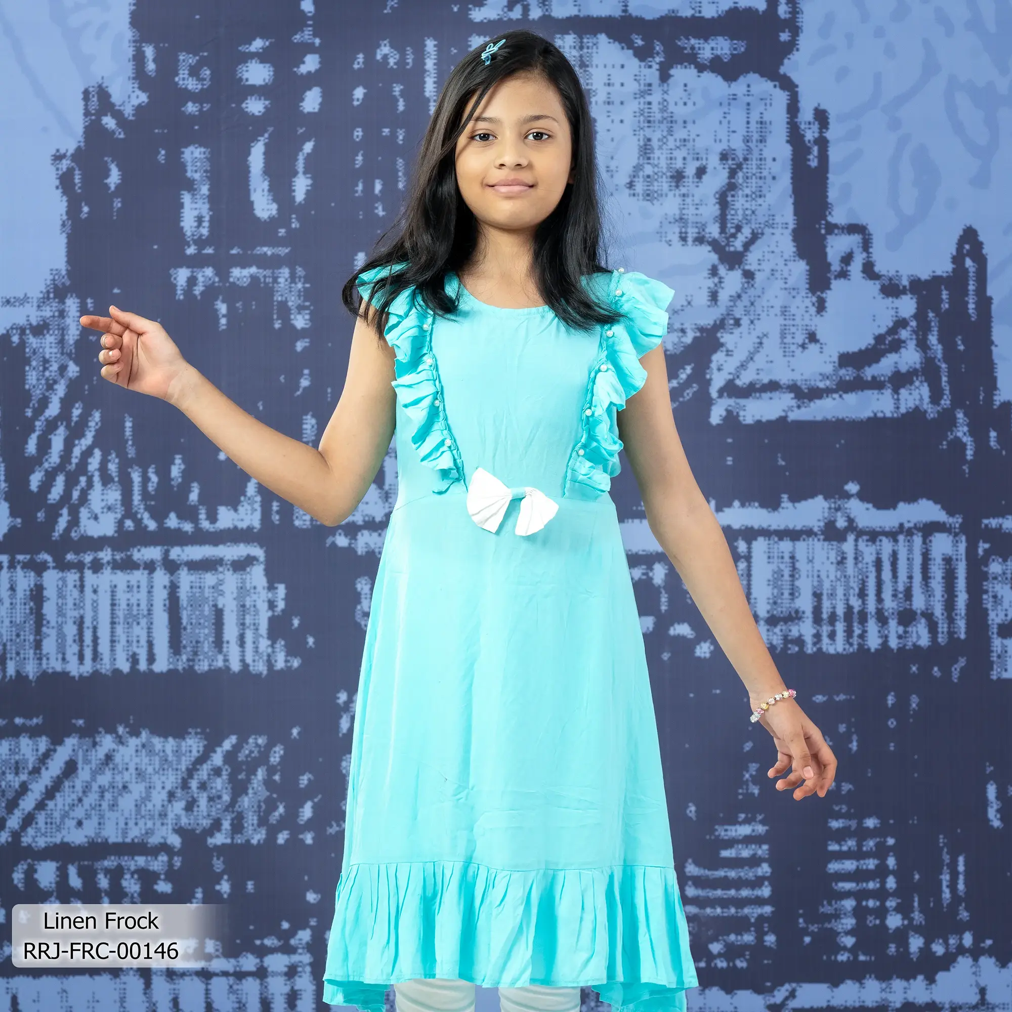 • Product Details: This linen girl’s  frock features patchwork.