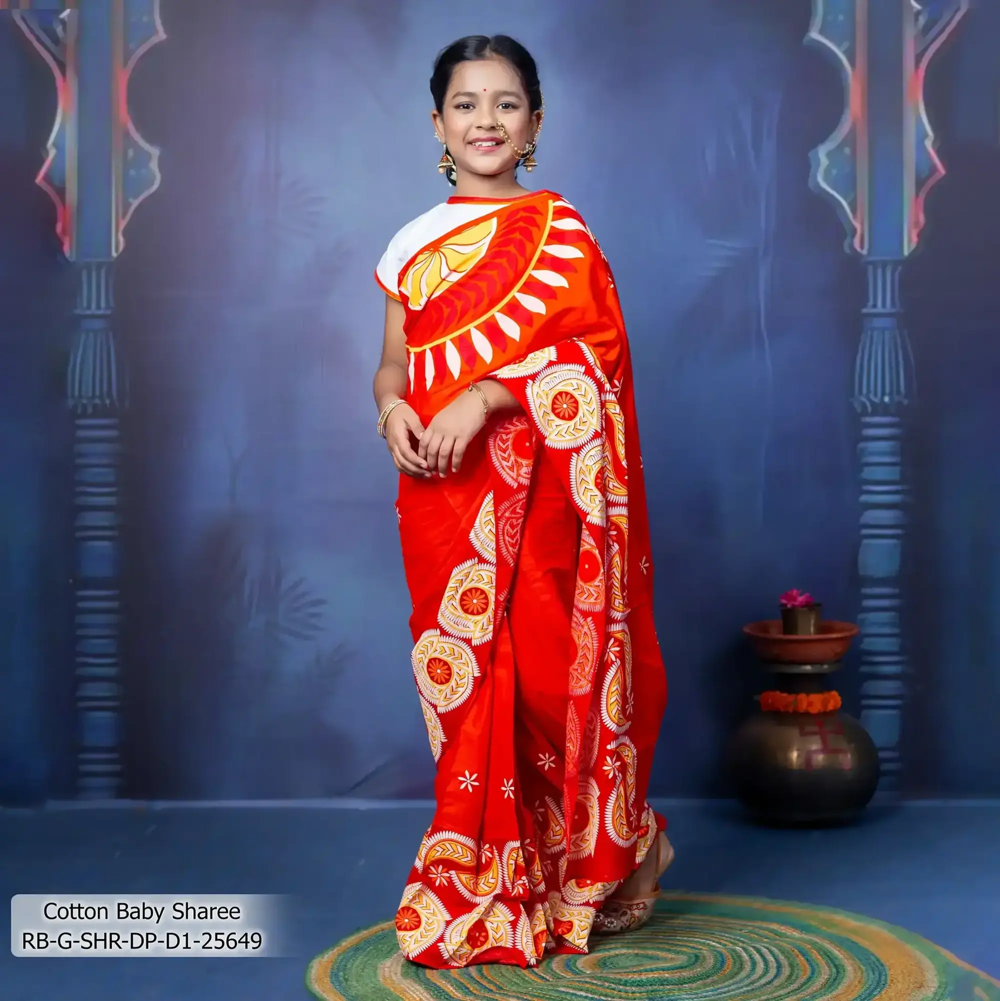 • Product Details: This Cotton girl’s sharee features Screen-Print ,Patch-work & Hand-work.