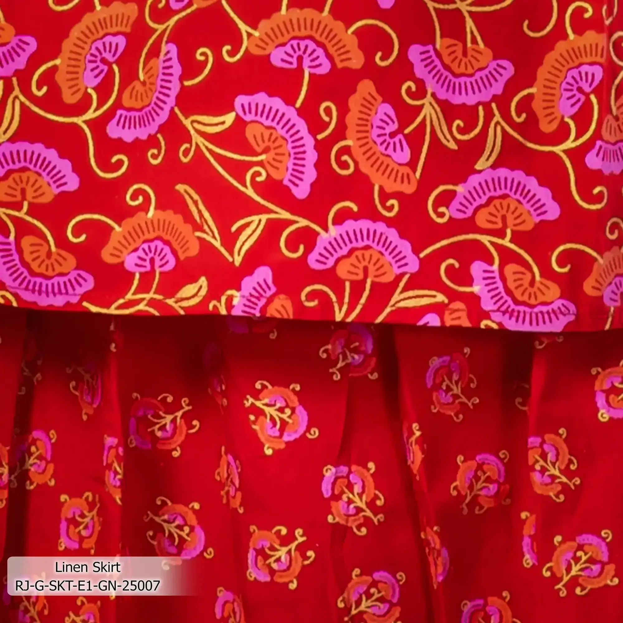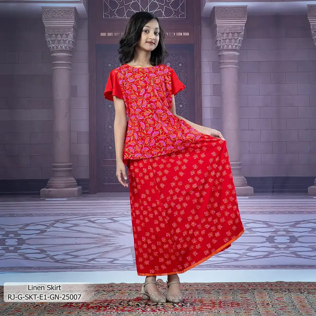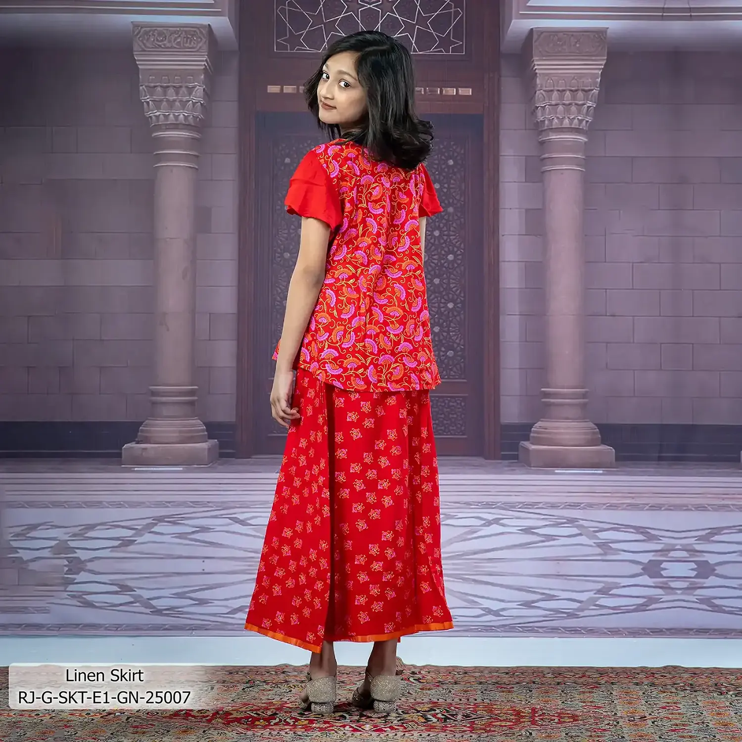 - Product Details: This linen girl’s skirt features screen-print & handwork.