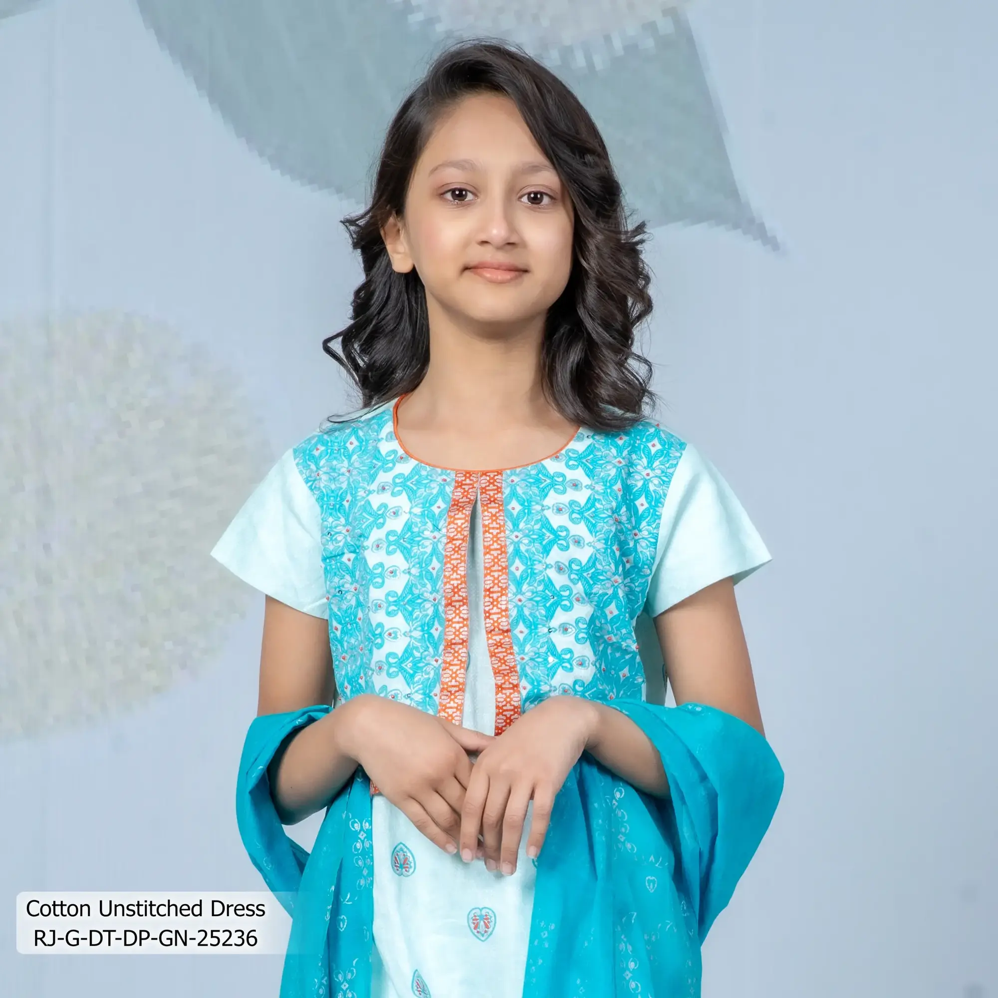 - Product Details: This Cotton girl’s dress features screen-Print , Patch-work & Hand-Work.
