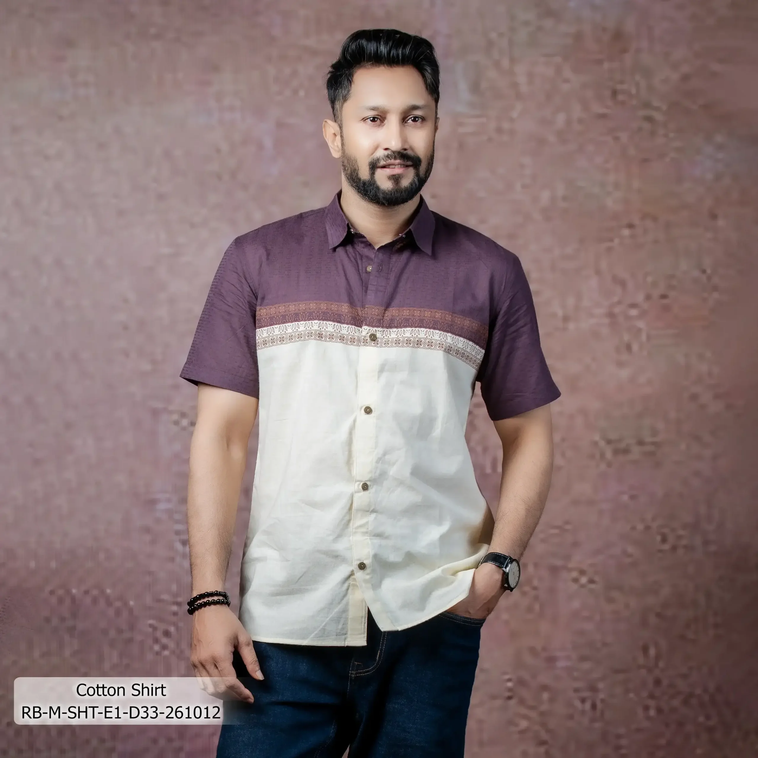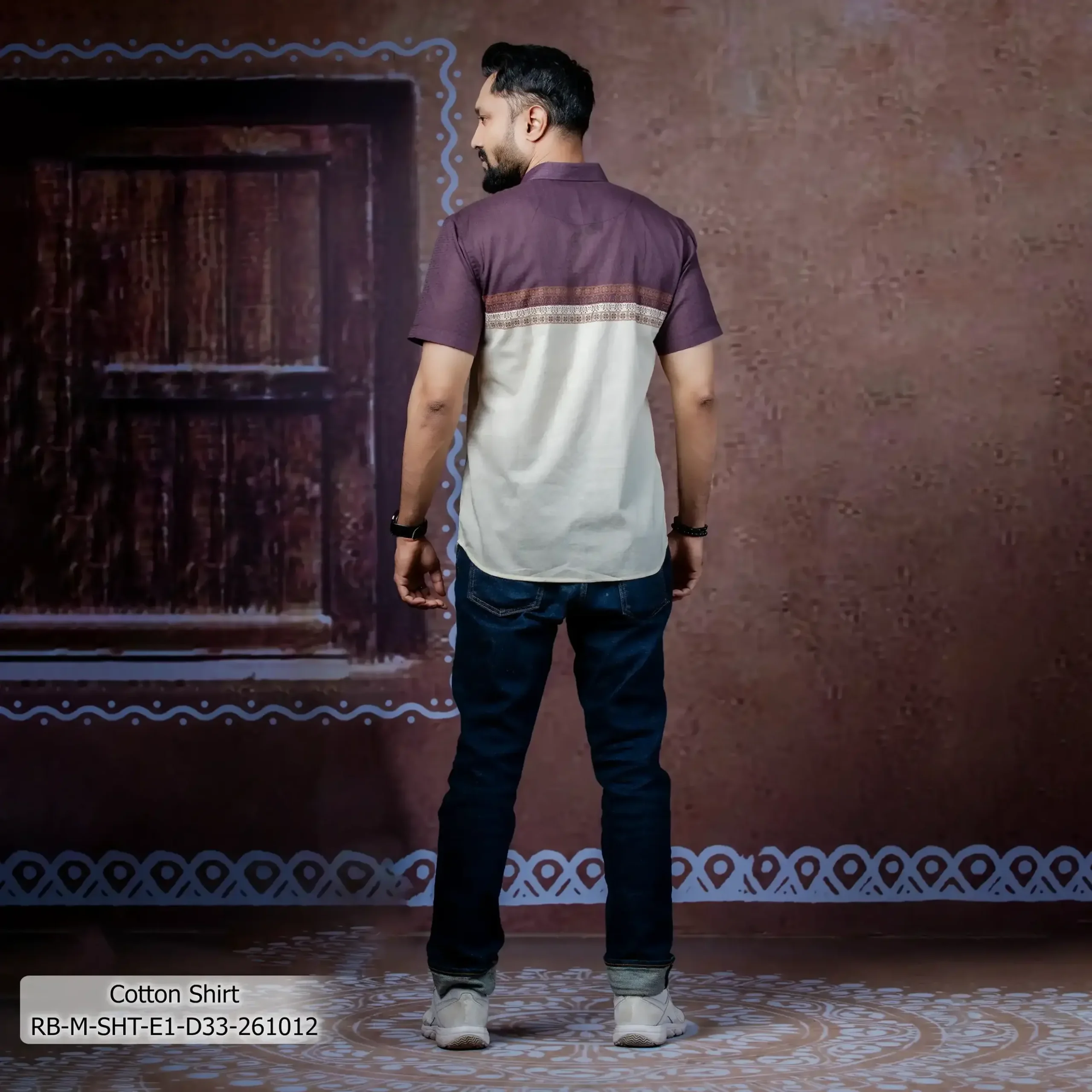 - Product Details: This Cotton men’s shirt features Screen-Print & Patch-work.
