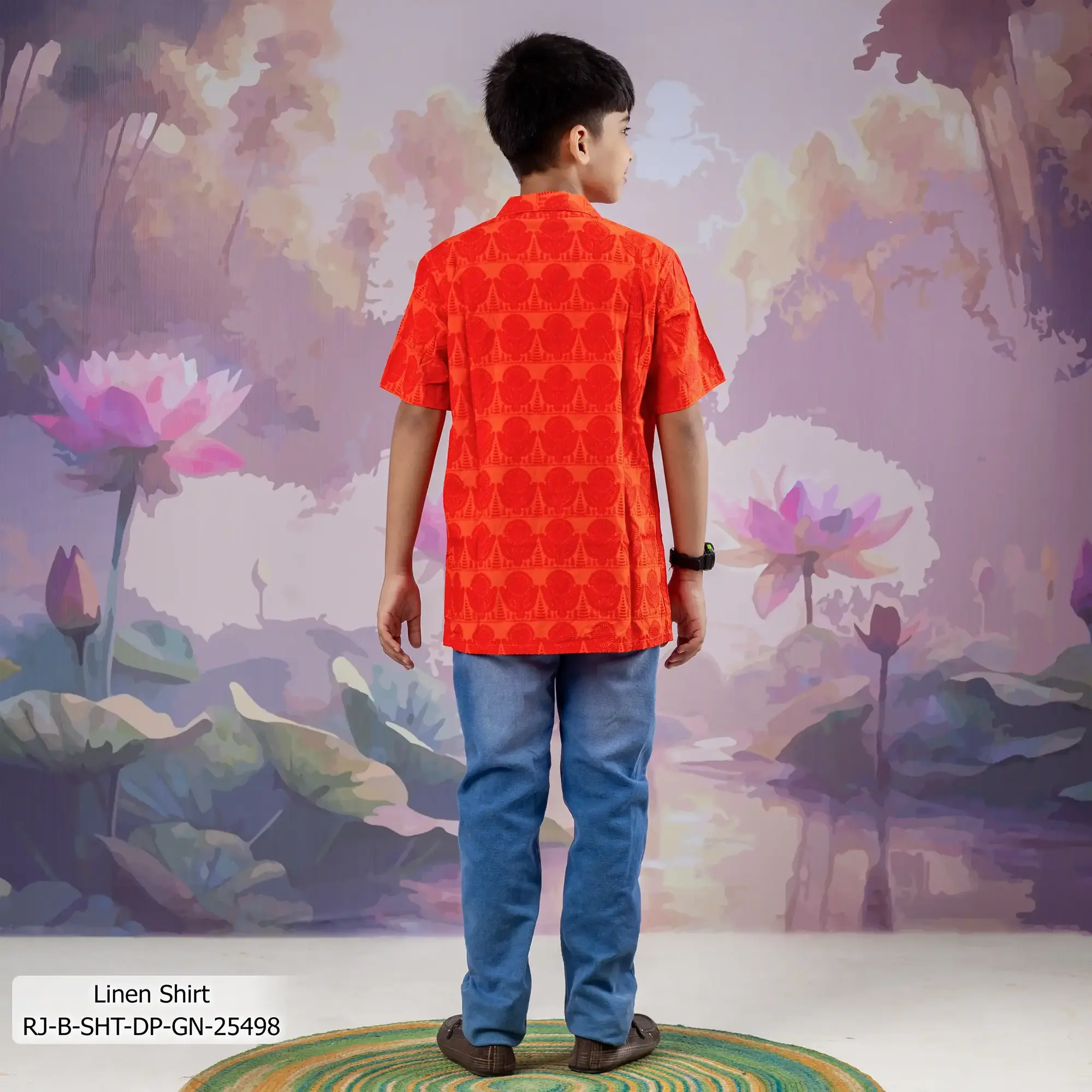 • Product Details: This Linen Boy’s shirt features Screen-print & Hand-work.