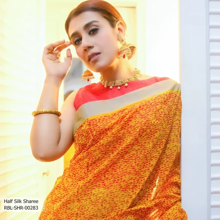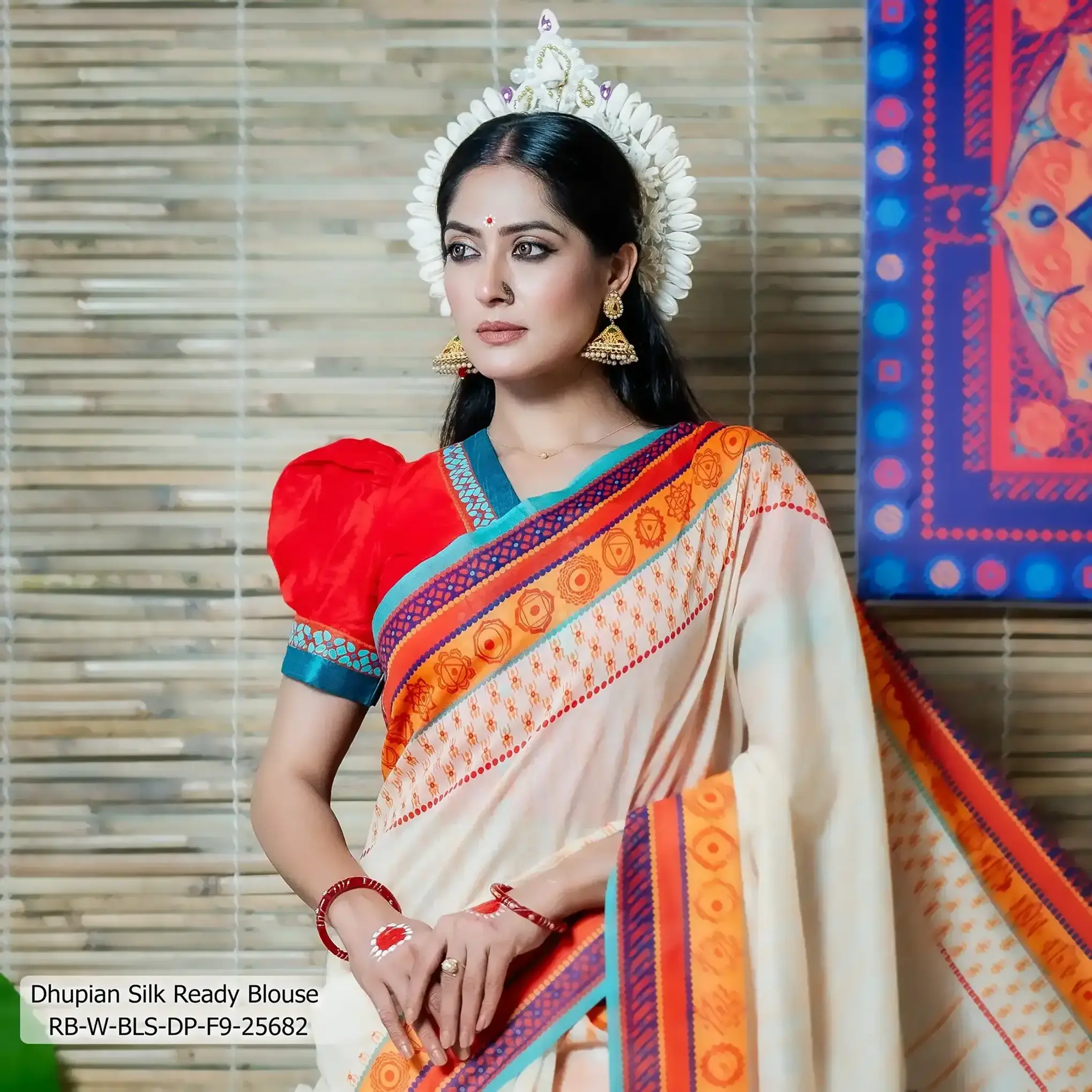 - Product Details: This Dhupian Silk women’s ready-blause features Screen-Print & Patch-Work