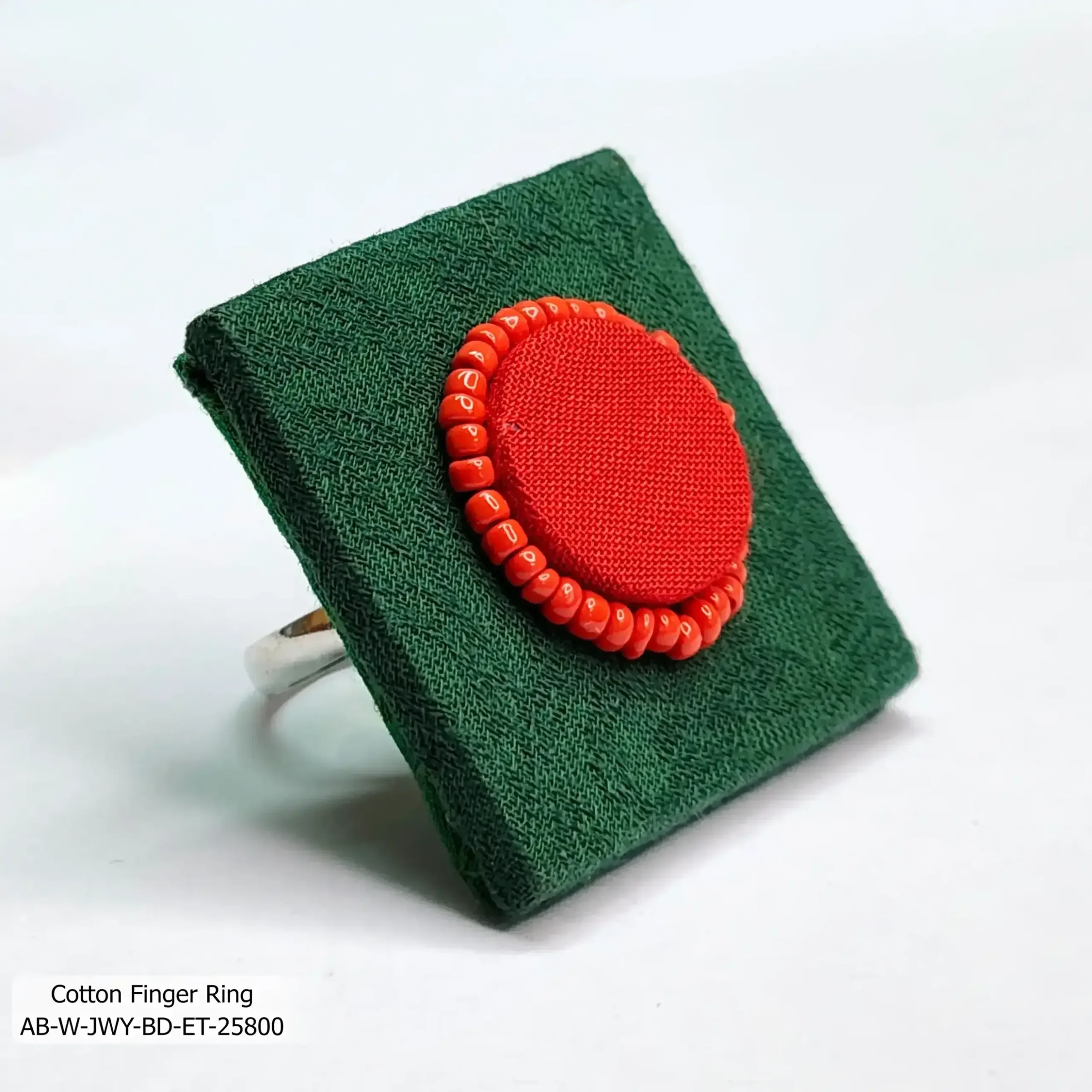 সৌন্দর্য ও সংস্কৃতির ছোঁয়ায় তৈরি এই হাতে কাজ করা ফিংগার রিংটি সিল্ক সুতার সূক্ষ্ম কারুকাজে বোনা হয়েছে। উজ্জ্বল লাল, কমলা ও কালো রঙের মিলনে তৈরি হয়েছে অনন্য এক ডিজাইন, যা আপনার ট্র্যাডিশনাল বা ফিউশন সাজে যোগ করবে এক বিশেষ মাত্রা। এই রিংটির ধাতব অংশটি অ্যাডজাস্টেবল, তাই এটি যেকোনো আঙুলে সহজেই মানিয়ে যাবে।