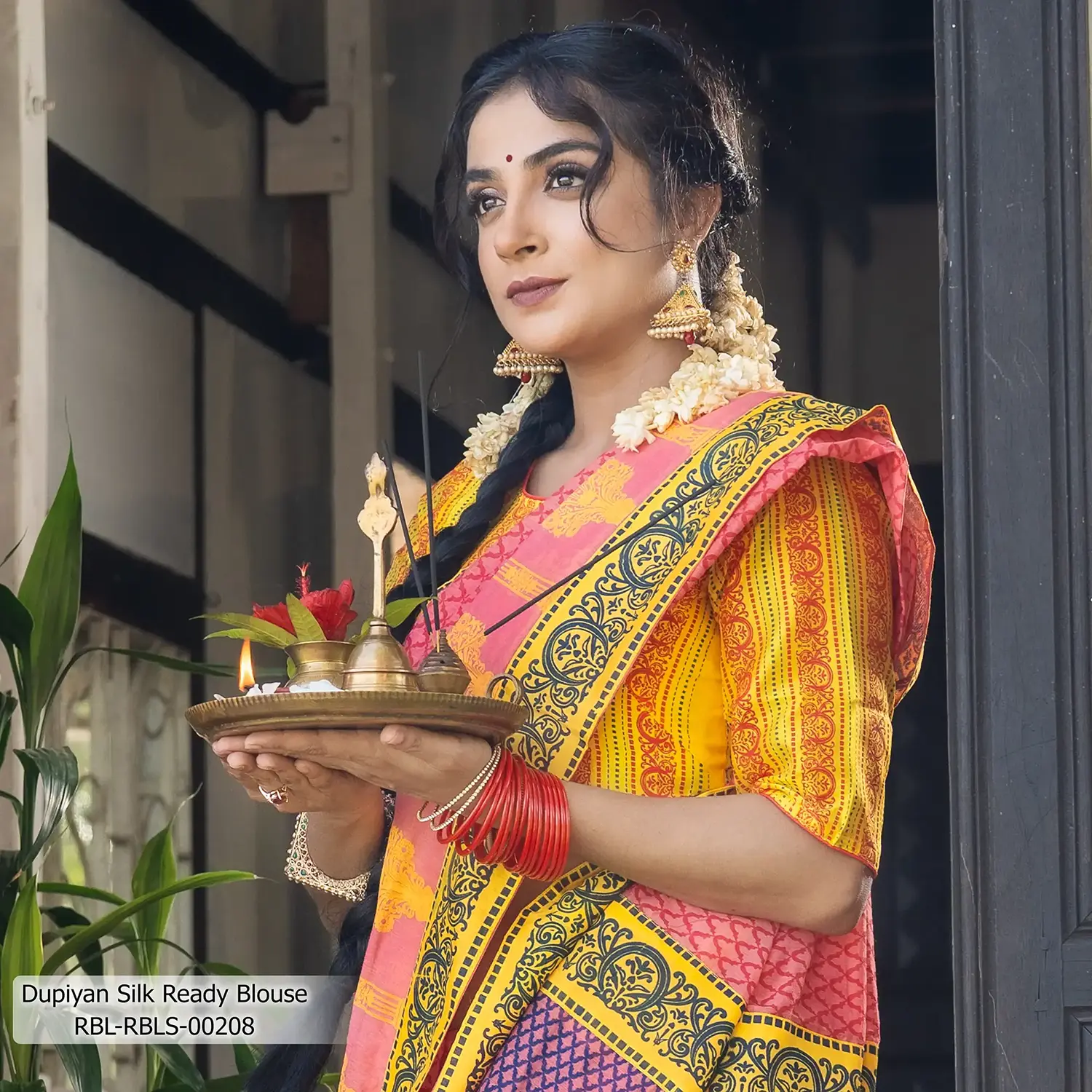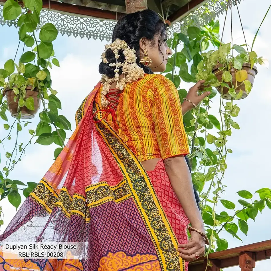 - Product Details: This dhupian women’s ready-blause features screen-print work.