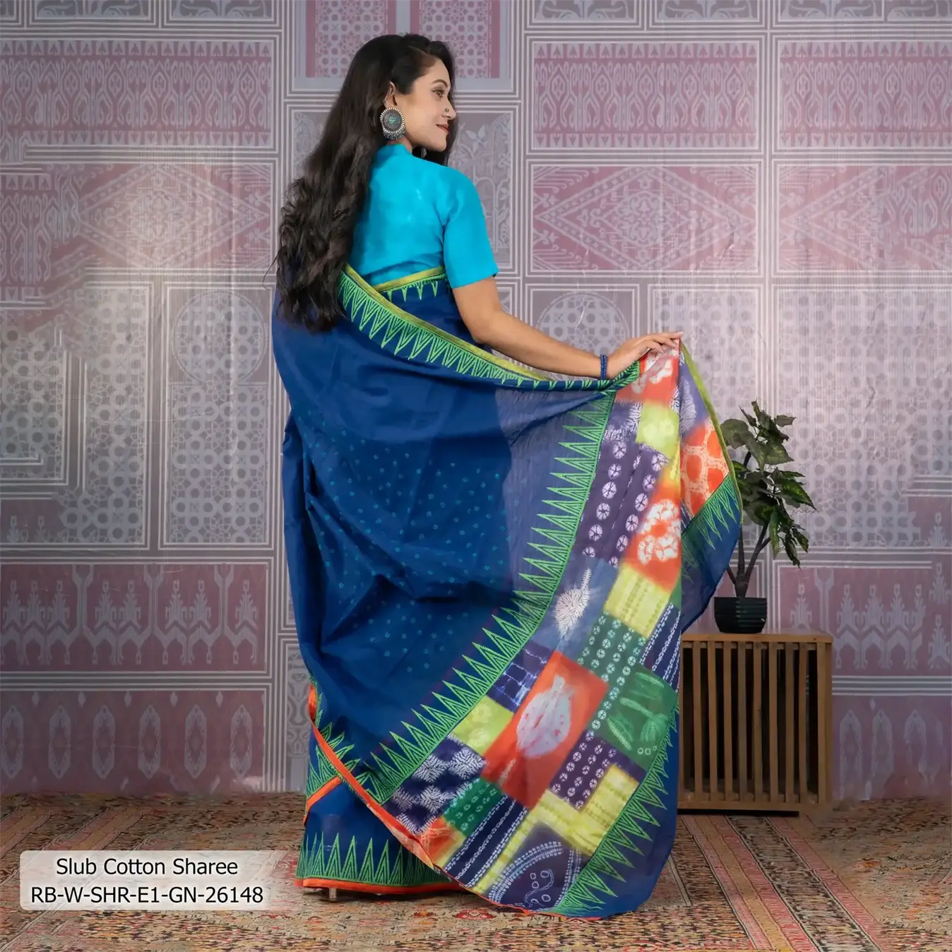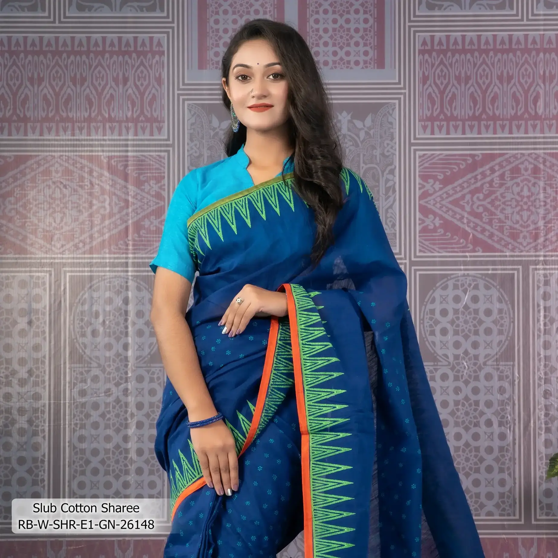 - Product Details: This Slub-Cotton sharee features Block-Print .