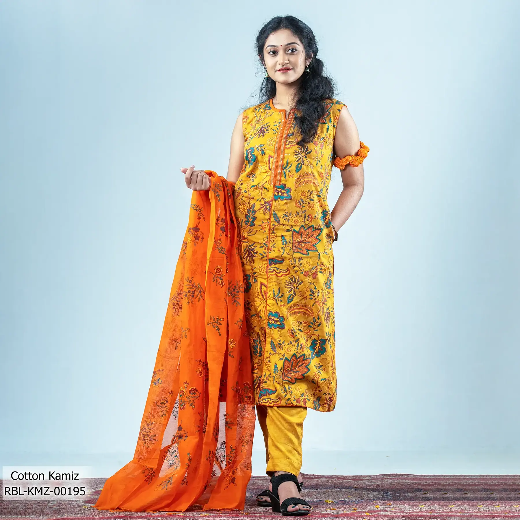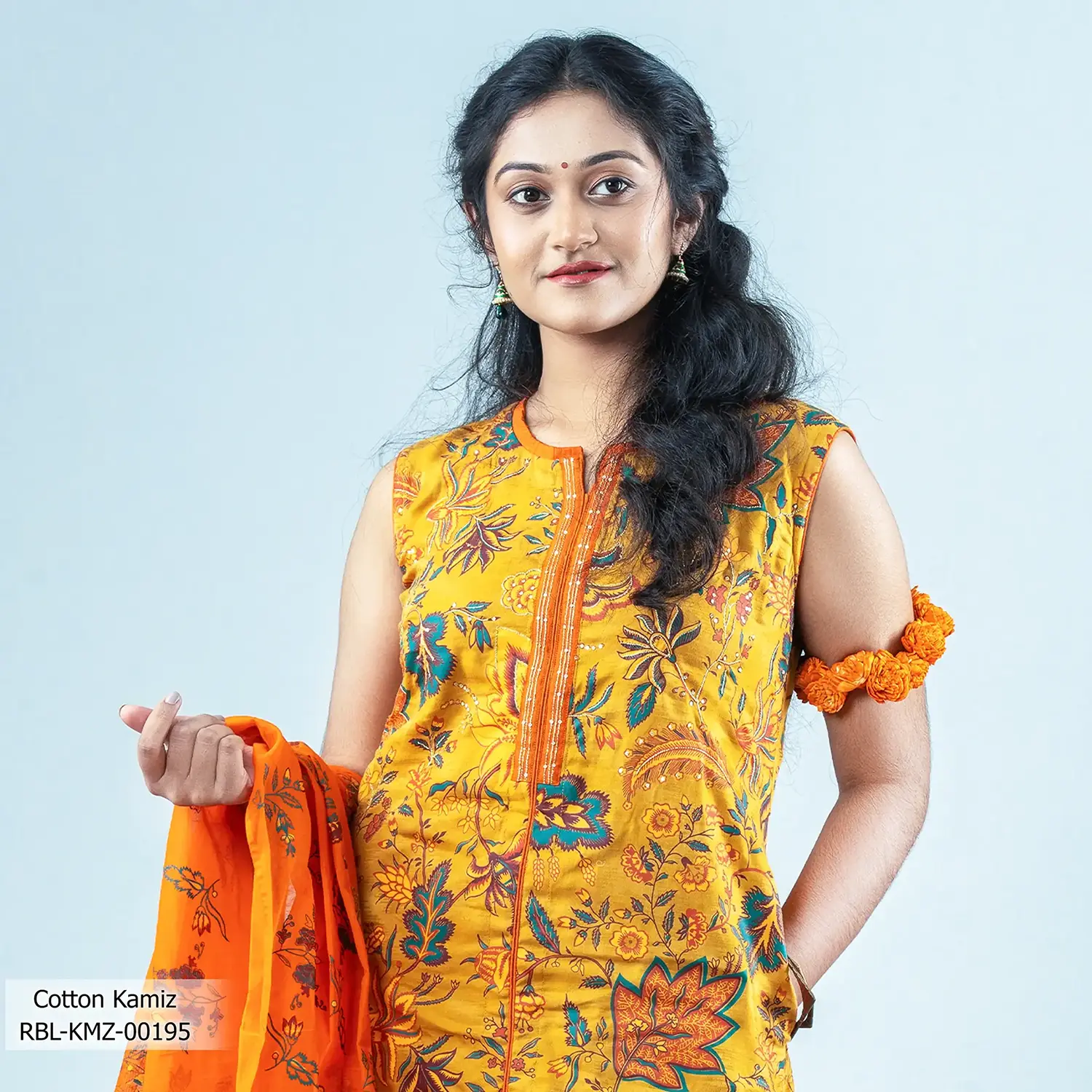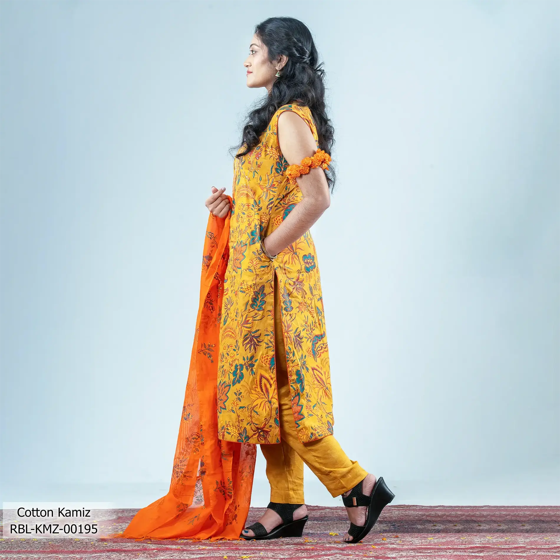 - Product Details: This Cotton women’s single kamiz features screen-print, karchupi & patchwork.