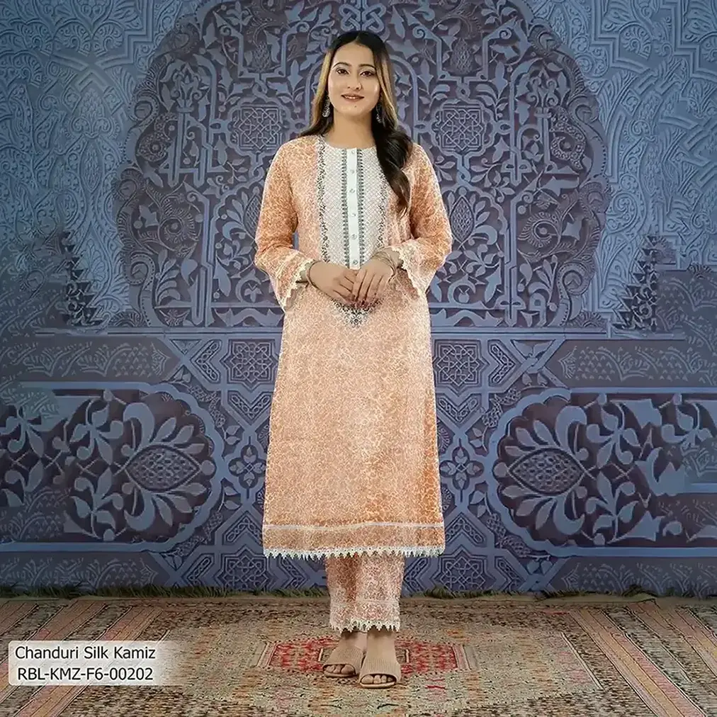 • Product Details: This chanduri-Silk women’s kamiz  dress features  handwork, patchwork & handwork.