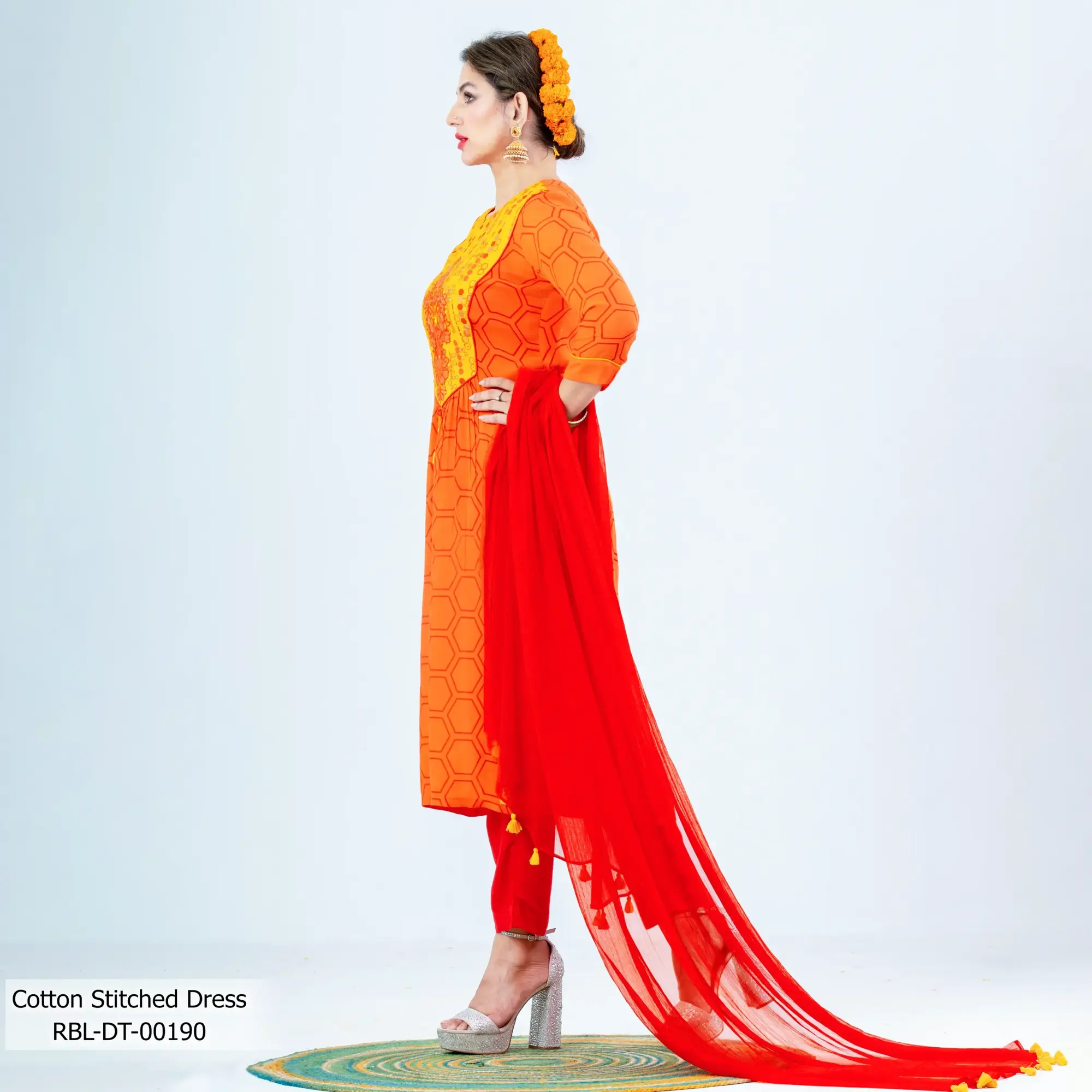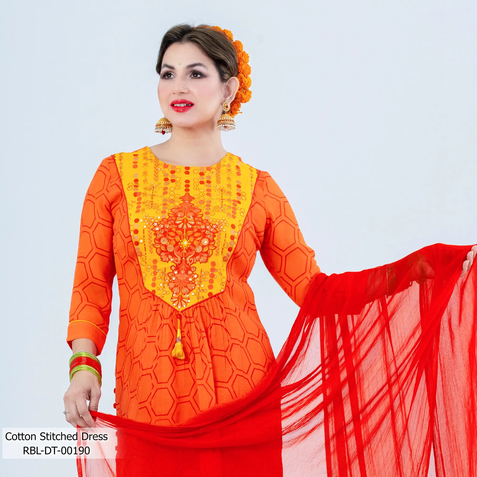 - Product Details: This slub-Cotton women’s stitched dress features screen-print, patchwork & handwork.