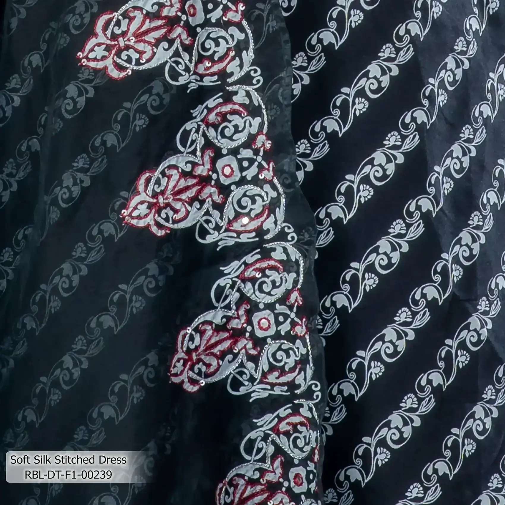 - Product Details: This Soft-silk women’s stitched dress features handwork, patchwork, screen-print & karchupi work.