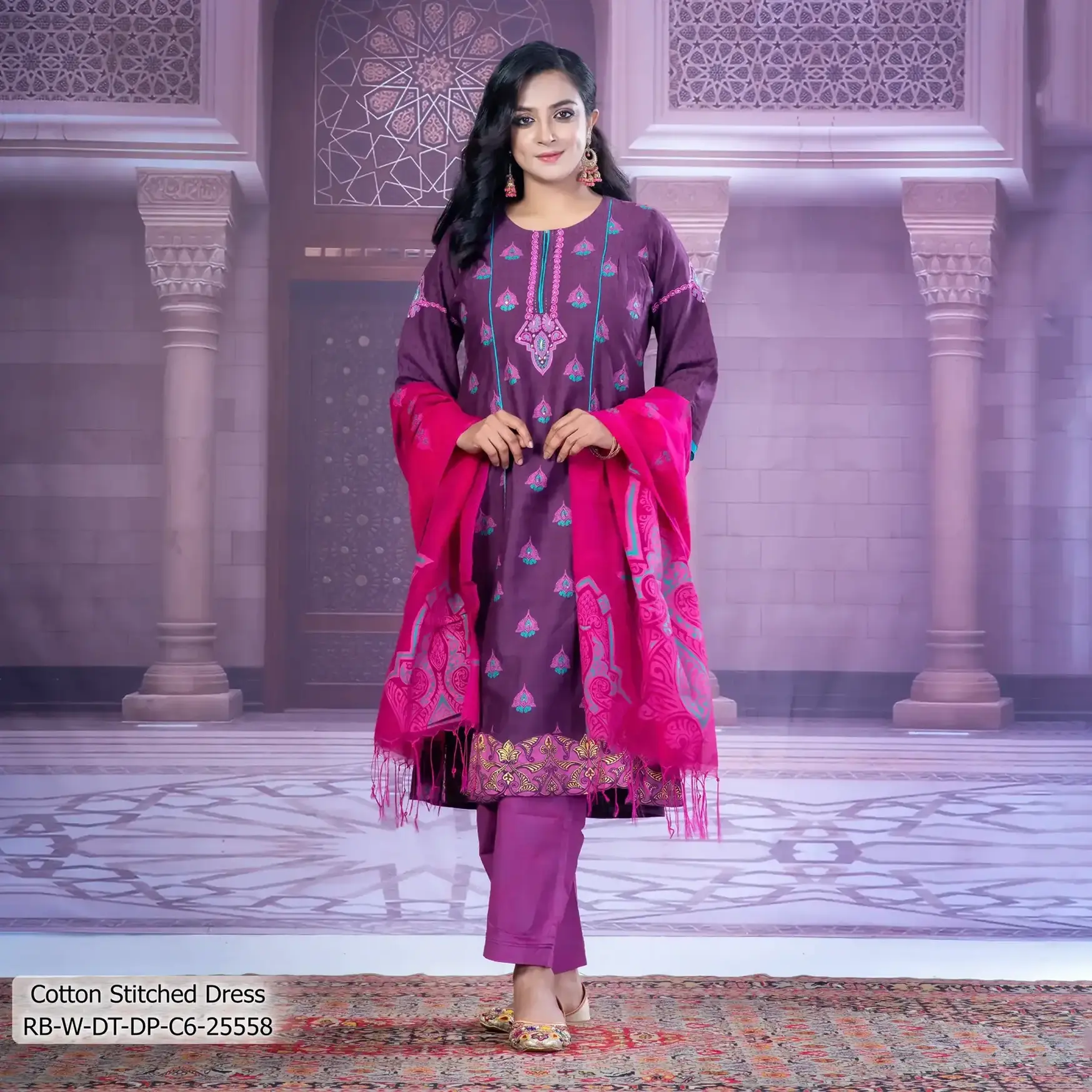 - Product Details: This Cotton women’s stitched dress features screen-print, handwork & embroidery work.