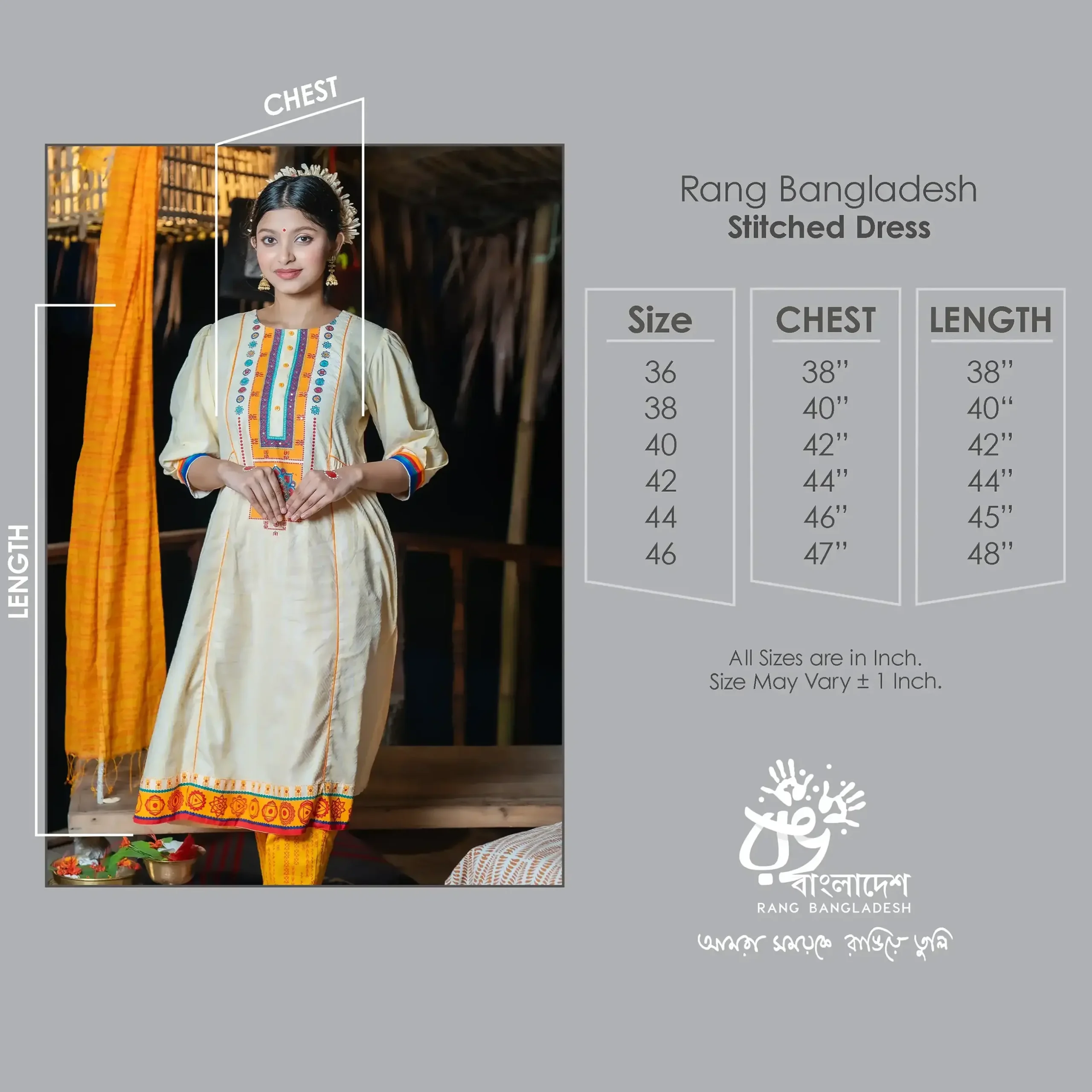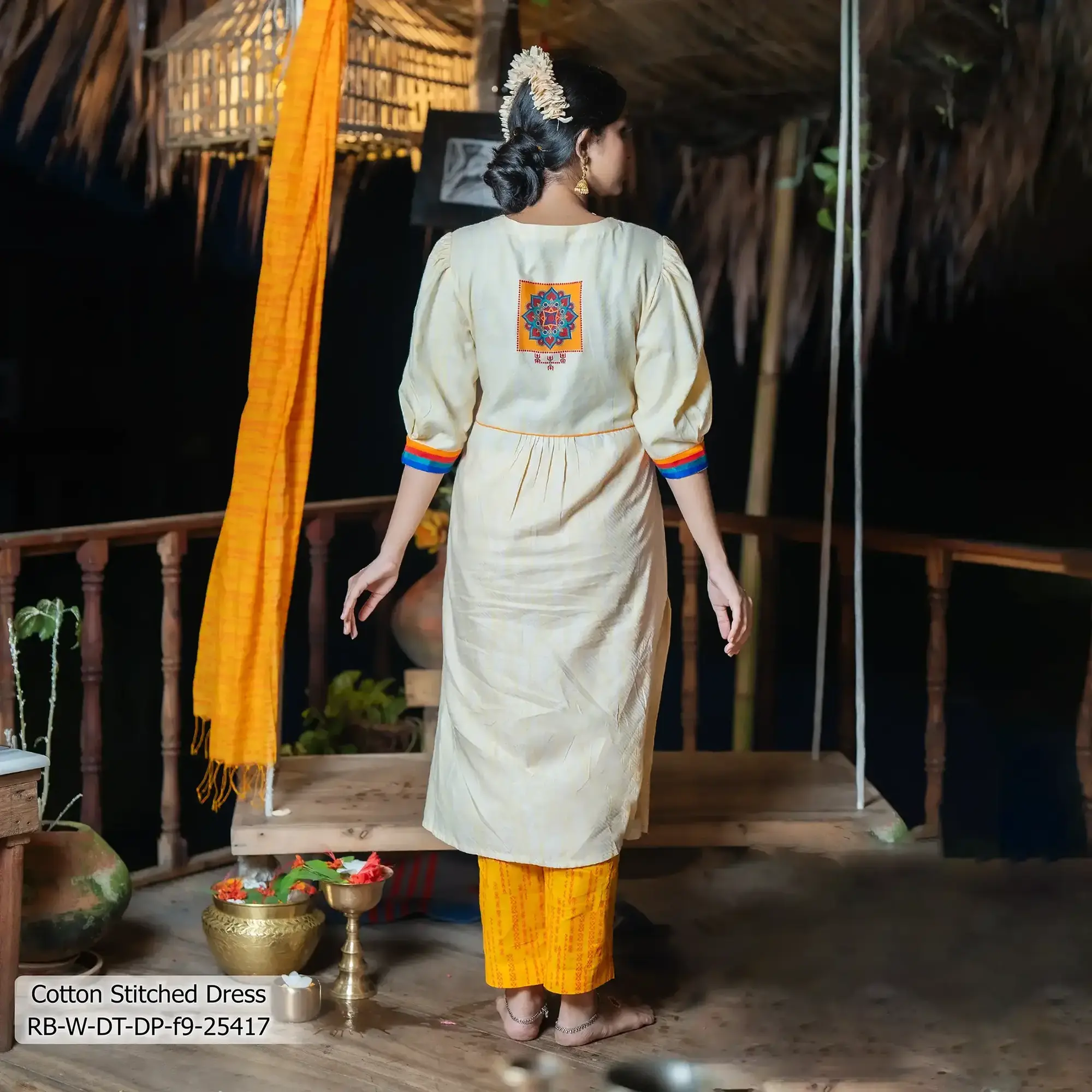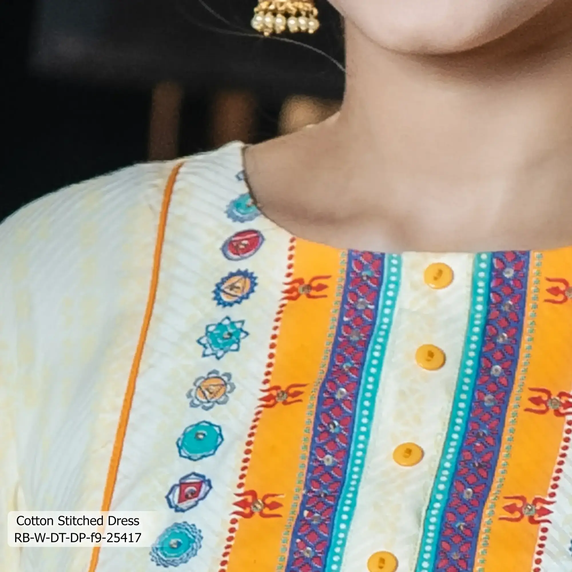 - Product Details: This cotton women’s stitched dress features screen-print & handwork.